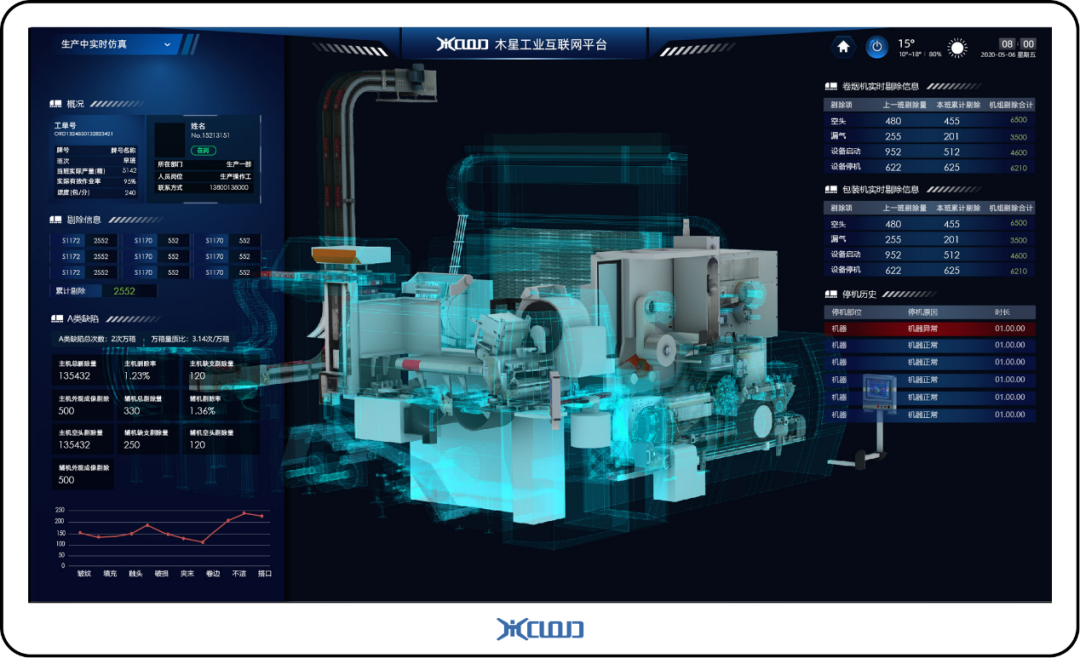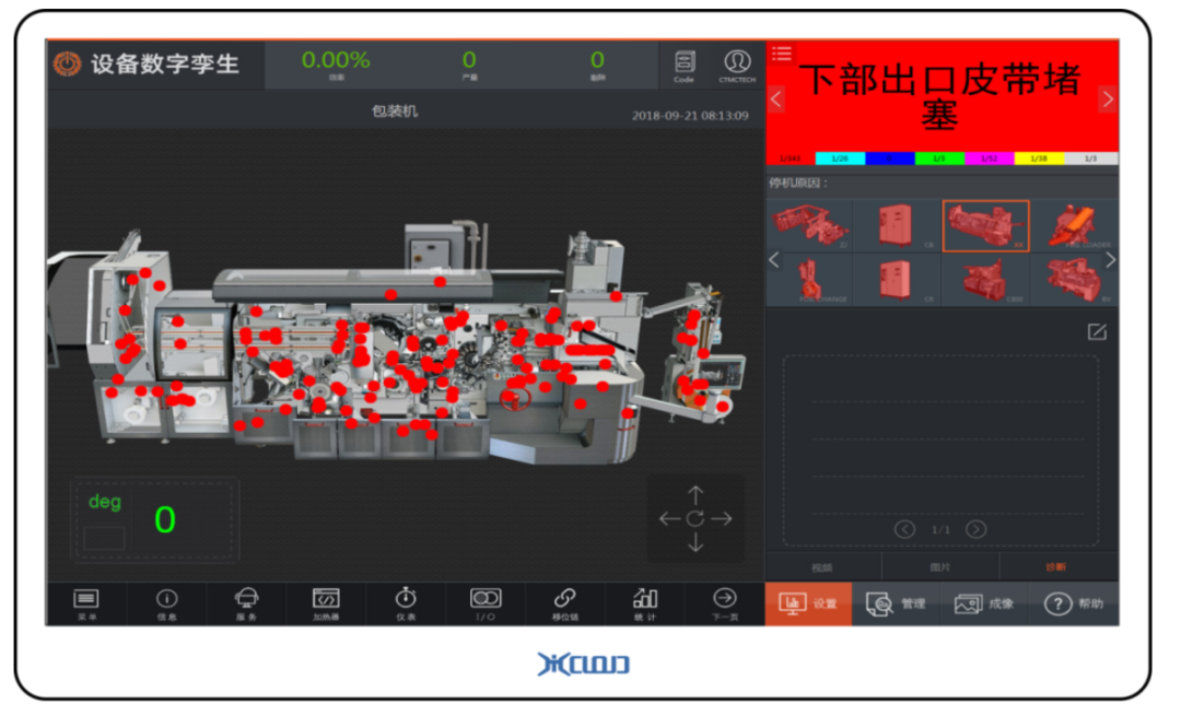 机理模型,就是要将几何空间的零部件,跟控制系统的机器动作进行匹配。机器的真实运动轨迹,在几何模型都有对应描述。这其中,都是通过数据标签,来标识零部件的状态,并且跟控制逻辑相对应。例如,薄膜纸会剔除那些无法包装的烟支和烟包。而烟支无法包装的原因会有几十种:薄膜褶皱、烟支重量不够、圆周不够圆、空投、漏气、重量等。需要深入了解这些机理,然后将其做成模型和算法,并与几何模型相对应。