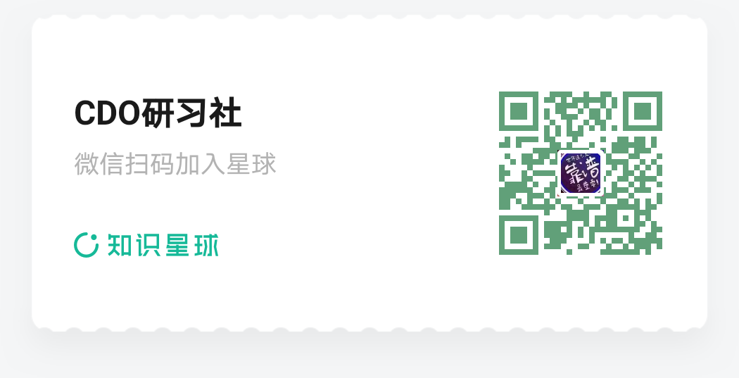 汇聚数据牛人实践精华网罗职场大佬成长秘籍公众号推文规则改变,关注CDO研习社并设为星标,以免错过优质干货,每天干货不断,与优秀数据从业者同行!也可以加入知识星球与众多大佬交流互动、获取N多超值干货。