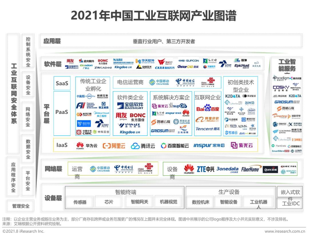 相关基础:云计算、5G、边缘计算、工业软件等相关领域与工业互联网产业发展相辅相成,是工业互联网应用效率化落地的能力基础。相关新兴技术的出现和演进显著地增强了工业互联网的服务供给能力,为工业互联网快速发展与应用提供坚实的保障。各类型企业利用自身传统业务优势在工业互联网相应赛道进行重点切入,以点连线带面,以图快速形成各具特色和专长的工业互联网解决方案。