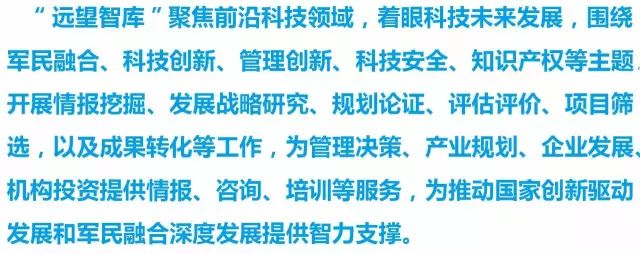 | 热点专题:军民融合|民参军|工业4.0|商业航天|国家重点研发计划|装备采办|摩尔定律|诺贝尔奖|国家实验室|军工百强|试验鉴定|双一流|净评估 | ||
