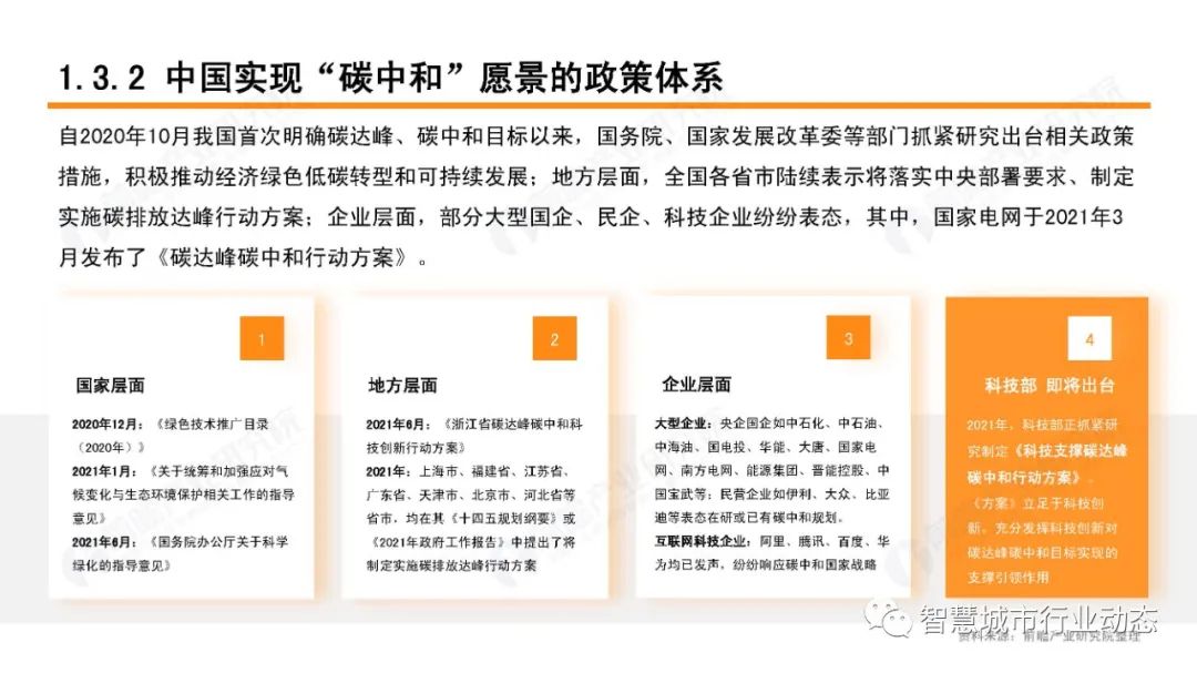 3、“碳中和”愿景下的低碳科技发展建议。持续发展节能节材、循环利用技术等;加快推进零碳非电能源技术的发展;重点突破零碳技术;超前部署增汇技术和负排放技术;推动耦合集成与优化技术发展,