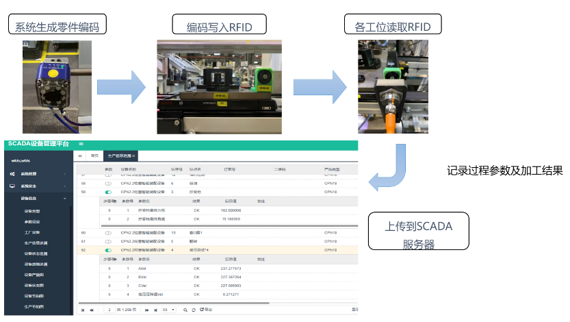 生产数据分别通过手持扫描、固定式扫描枪扫描进行采集,采集后记录相关数据,并展示数据处理结果。所有业务活动的数据都是基于一维码、二维码作为信息载体,使用RFID、PLC通过手动或固定式扫描枪进行采集。