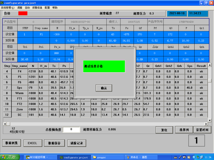 性能测试台根据设定程序对每台产品测试结果进行自主判断,分析每个步骤是否合格并提取最终结果反馈到设备,屏幕界面进行提示,测试结果上传并存储在服务器。