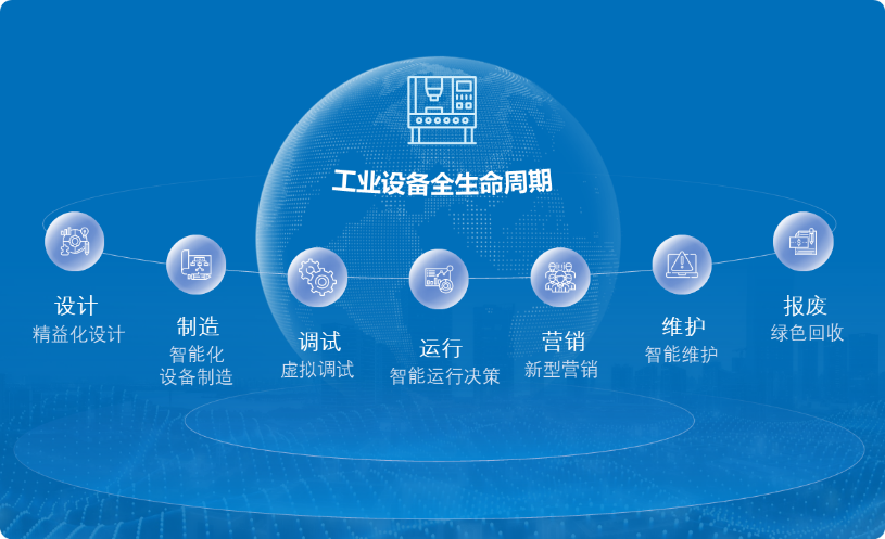 一、工业设备数字孪生技术应用场景工业设备构建的数字孪生系统应用可以贯穿工业设备的整个生命周期,解决工业设备在设计、制造、调试、运行、维护、报废、营销阶段的问题,从而提升设备从设计到报废过程的智能化水平。