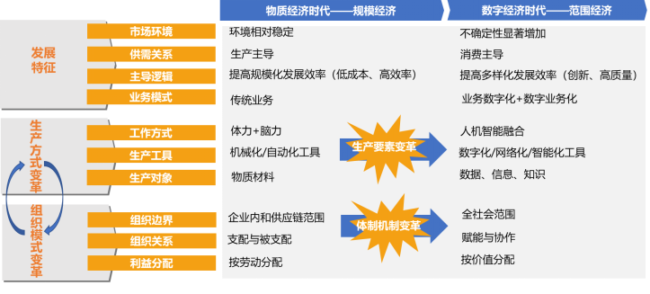四是数字化转型的关键驱动要素是数据。数据是继土地、劳动力、资本、技术之后的第五大生产要素,其核心关键作用首先是作为一种信息沟通的媒介,通过数字化转型推动基于数据的信息透明和对称,可提升组织(企业)综合集成水平,提高社会资源的综合配置效率。其次,随着区块链等技术发展,数据也已成为一种新的信用媒介,通过数字化转型推动基于数据的价值在线交换,可提升数字组织(企业)价值创造能力,提高社会资源的综合利用水平。第三,用数据科学重新定义生产机理,数据还将成为知识经验和技能的新载体,通过数字化转型推动基于数据模型的知识共享和技能赋能,可提升生态组织开放合作与协同创新能力,提高社会资源的综合开发潜能。