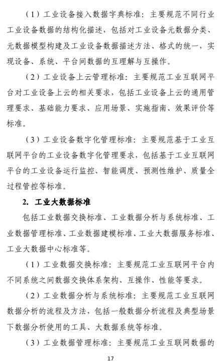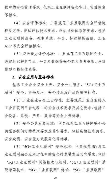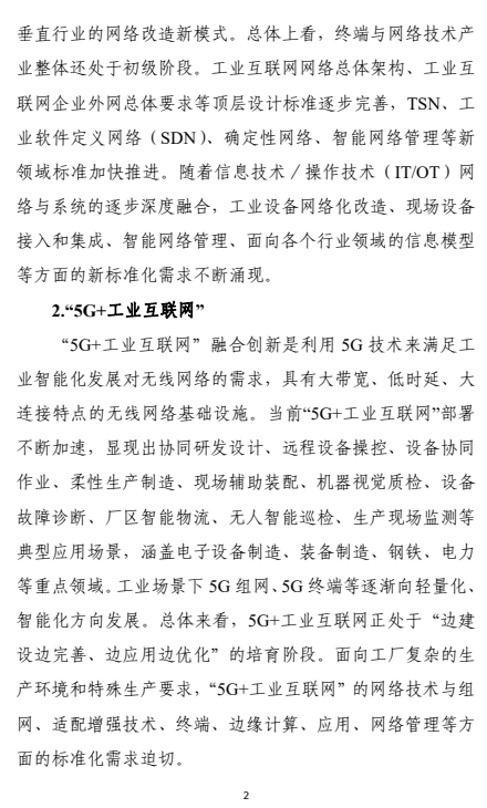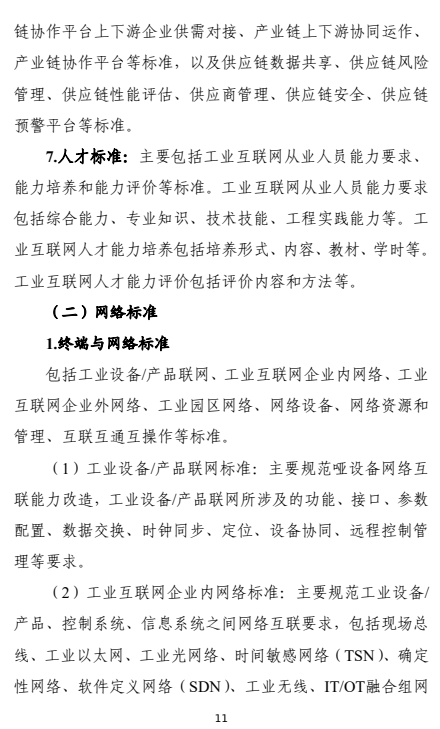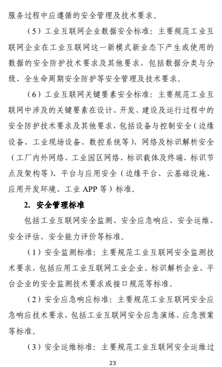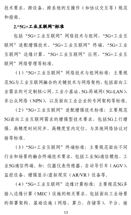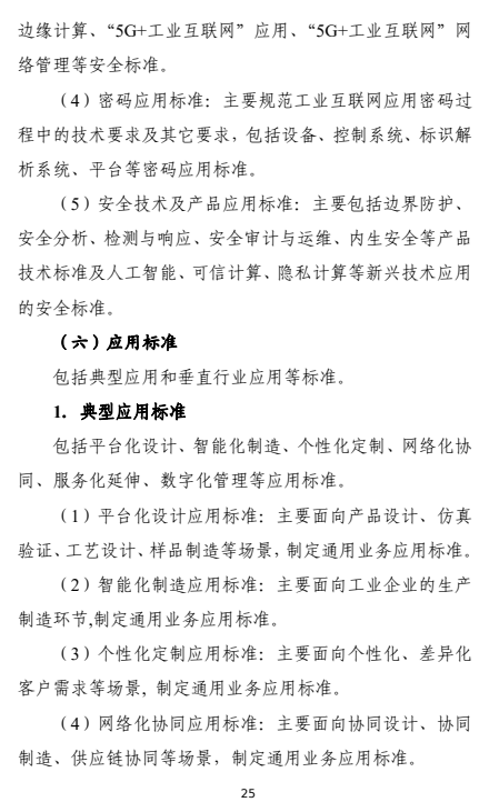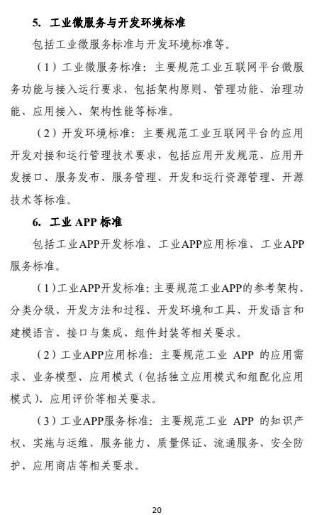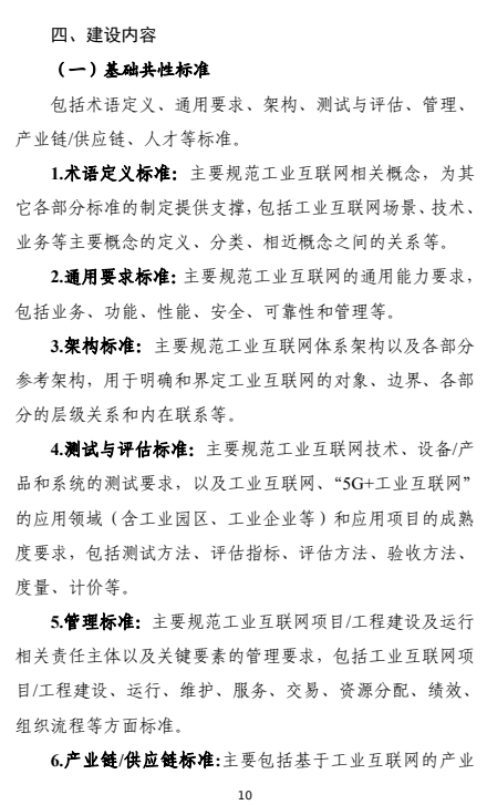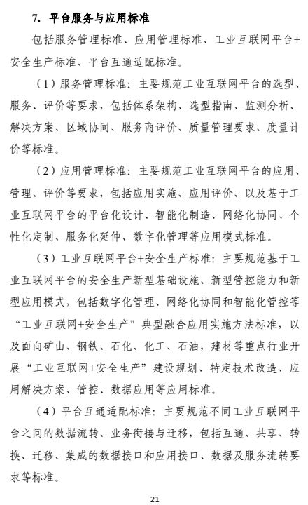 导 读工业和信息化部、国家标准化管理委员会近日联合印发《工业互联网综合标准化体系建设指南(2021版)》,明确到2023年,工业互联网标准体系持续完善。制定术语定义、通用需求、供应链/产业链、人才等基础共性标准15项以上,“5G+工业互联网”、信息模型、工业大数据、安全防护等关键技术标准40项以上,面向汽车、电子信息、钢铁、轻工(家电)、装备制造、航空航天、石油化工等重点行业领域的应用标准25项以上,推动标准优先在重点行业和领域率先应用,引导企业在研发、生产、管理等环节对标达标。到2025年,制定工业互联网关键技术、产品、管理及应用等标准100项以上,建成统一、融合、开放的工业互联网标准体系,形成标准广泛应用、与国际先进水平保持同步发展的良好局面。