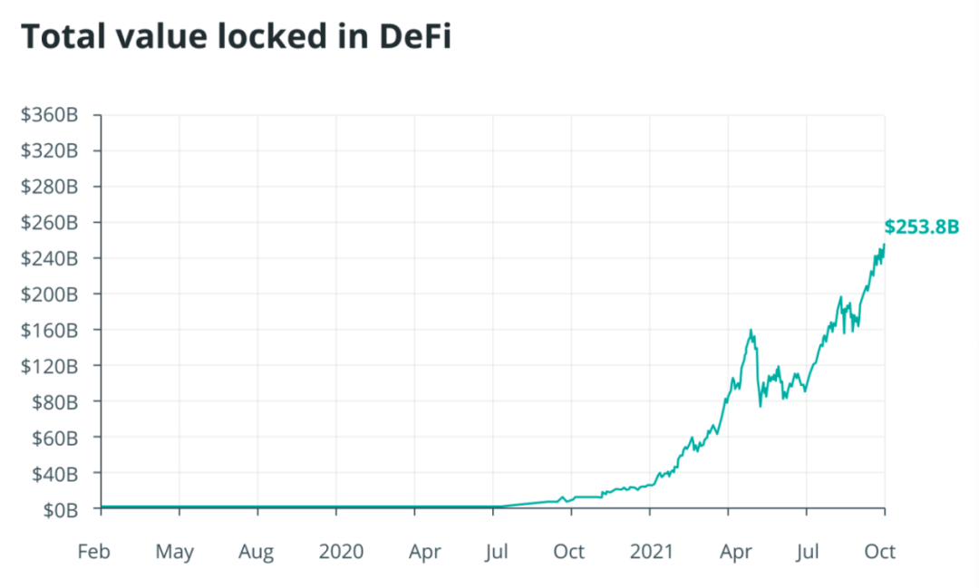 图2: DeFi资产超过2538亿提供替代金融服务(来自https://news.coincu.com/31238-defi-could-be-100-times-bigger-in-5-years-t han-it-is-today/)