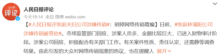 前段时间,张庭、林瑞阳夫妇涉嫌传销被查。