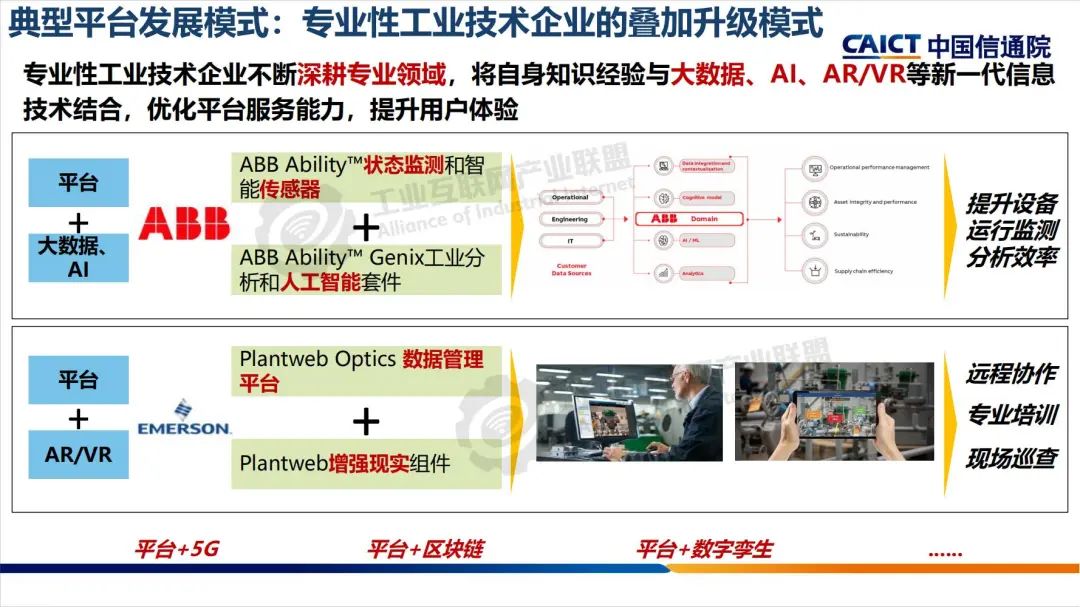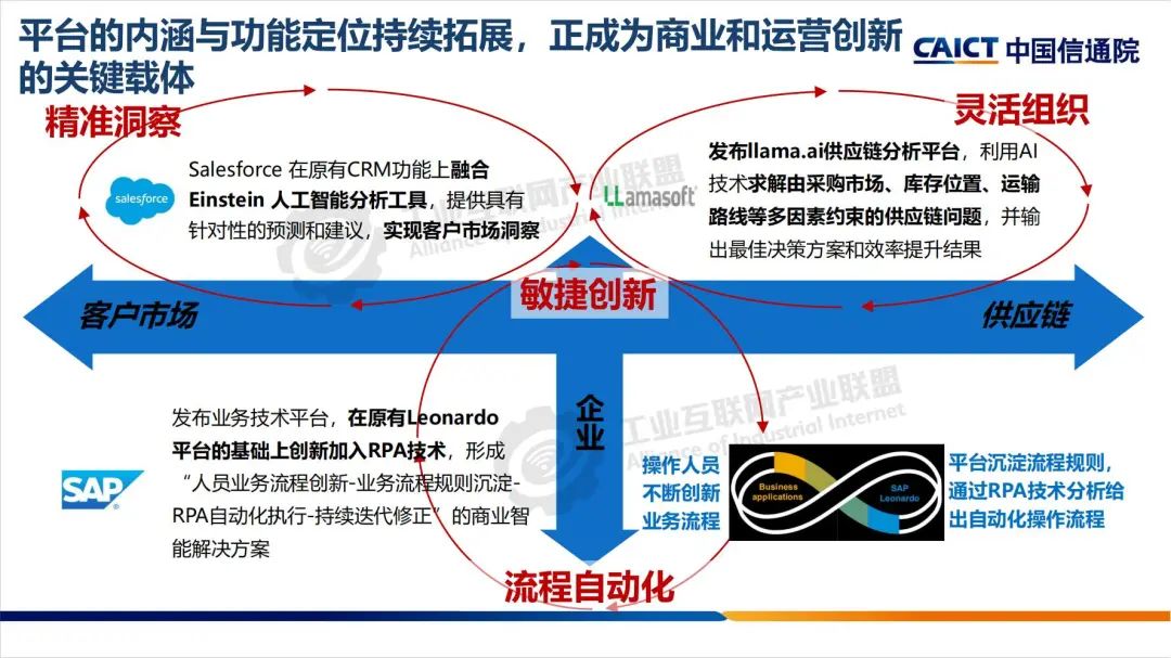 本期为您带来由中国信息通信研究院信息化与工业化融合研究所平台与解决方案部工程师刘阳带来的《全球工业互联网平台发展态势》分享。工业互联网平台是面向制造业数字化、网络化、智能化需求,构建基于海量数据采集、汇聚、分析的服务体系,支撑制造资源泛在连接、弹性供给、高效配置的载体,具备泛在连接、云化服务、知识积累、应用创新四大特点。平台的内涵与功能定位持续拓展,正成为商业和运营创新的关键载体。在差异化能力的要求下,我国多元化的平台形态正在形成。基于此,未来平台发展建议要以分层分专业合作,应对差异化;汇聚平台能力,促进园区数字化转型;聚焦行业应用痛点,加速垂直行业深耕;以能力沉淀+商业模式创新提升盈利能力;以市场流量资源汇聚牵引技术创新,全方位推动工业互联网平台发展。