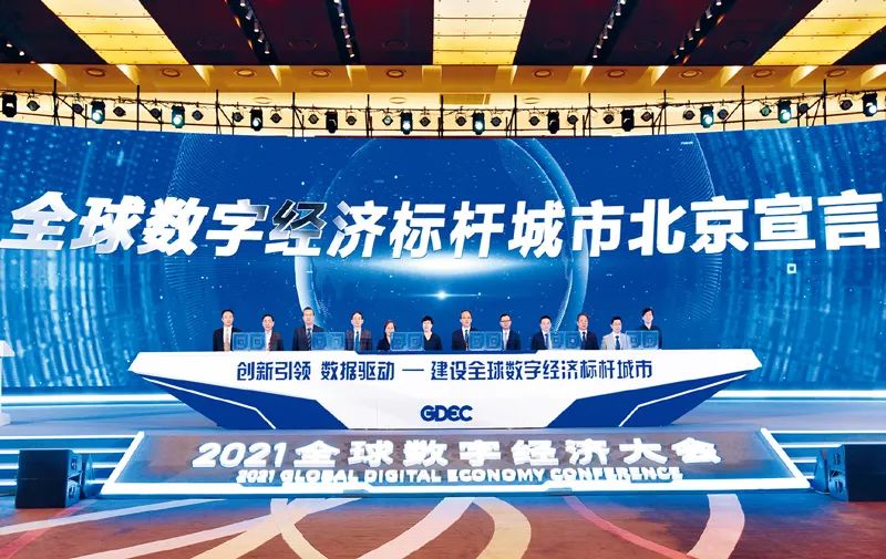 2021年8月2日,2021全球数字经济大会在北京国家会议中心举行。图为《全球数字经济标杆城市北京宣言》在大会主论坛上发布。 中新社发 2021全球数字经济大会供图“长期以来,我一直重视发展数字技术、数字经济。”早在2000年,时任福建省长的习近平同志就以极大的胆识和魄力在全国率先提出建设“数字福建”,并挂帅担任“数字福建”建设领导小组组长,推动“数字福建”写入省委“十五”计划纲要建议,开启了福建的数字化转型。如今,“数字福建”已深度融入经济、政治、文化、社会、生态等各方面,大大推动了福建经济社会发展。2003年,时任浙江省委书记的习近平同志高瞻远瞩地作出建设“数字浙江”的战略决策,把打造“数字浙江”作为“八八战略”的重要内容,绘制了“数字浙江”的美好蓝图,推动浙江数字经济快速发展。党的十八大以来,习近平总书记以对新一轮科技革命和产业变革的高度敏锐性和深刻洞察力,多次强调要发展数字经济,并就发展数字经济发表一系列重要论述、阐明一系列创新观点、作出一系列战略部署。——2016年,习近平总书记在主持十八届中央政治局第三十六次集体学习时强调,“世界经济加速向以网络信息技术产业为重要内容的经济活动转变”,要“做大做强数字经济、拓展经济发展新空间”;在二十国集团领导人杭州峰会上,总书记首次提出发展数字经济的倡议,推动制定《二十国集团数字经济发展与合作倡议》,为世界经济注入了新动力。——2017年,习近平总书记在主持十九届中央政治局第二次集体学习时强调,“大数据是信息化发展的新阶段”,要“加快建设数字中国”,“构建以数据为关键要素的数字经济”,“推动实体经济和数字经济融合发展”。——2018年,在全国网络安全和信息化工作会议上,习近平总书记强调:“信息化为中华民族带来了千载难逢的机遇”,“网信事业代表着新的生产力和新的发展方向”,“要坚定不移支持网信企业做大做强,也要加强规范引导,促进其健康有序发展”;在年底的中央经济工作会议上,总书记强调要加快5G、人工智能、工业互联网等新型基础设施建设。——2019年,习近平总书记在致2019中国国际数字经济博览会的贺信中指出,“数字经济蓬勃发展,深刻改变着人类生产生活方式,对各国经济社会发展、全球治理体系、人类文明进程影响深远”,强调“中国高度重视发展数字经济”,“积极推进数字产业化、产业数字化,引导数字经济和实体经济深度融合,推动经济高质量发展”。——2020年,习近平总书记在中央财经委员会第七次会议上强调,要“加快数字经济、数字社会、数字政府建设,推动各领域数字化优化升级,积极参与数字货币、数字税等国际规则制定,塑造新的竞争优势”。——2021年,习近平总书记在致世界互联网大会乌镇峰会的贺信中指出,“数字技术正以新理念、新业态、新模式全面融入人类经济、政治、文化、社会、生态文明建设各领域和全过程,给人类生产生活带来广泛而深刻的影响”,要“激发数字经济活力,增强数字政府效能,优化数字社会环境,构建数字合作格局,筑牢数字安全屏障,让数字文明造福各国人民”。习近平总书记的一系列重要论述,紧密结合世界科技革命和产业变革大势,立足我国发展实际,深刻揭示了数字经济发展趋势和规律,科学回答了“为什么要发展数字经济、怎样发展数字经济”的重大问题,指引我国数字经济发展取得显著成就。推动高质量发展的新引擎“亲身”感受空间站发射全过程,“化身”宇航员漫步太空;数字技术在量子通信、量子计算、量子传感、AI视频修复、工业互联网、区块链等领域大显身手;大数据、人工智能等已经应用到新冠肺炎疫情防控中……2021全球数字经济大会会场设置的数字经济特展,集中展示了一大批先进的新技术、新应用,充分体现了我国数字经济发展的蓬勃活力。党的十八大以来,在以习近平同志为核心的党中央坚强领导下,在习近平新时代中国特色社会主义思想特别是总书记关于数字经济重要论述科学指引下,我国深入实施数字经济发展战略,推进数字产业化和产业数字化取得积极成效,数字经济成为高质量发展的新引擎,为经济社会持续健康发展提供了重要动力。在这篇重要文章中,习近平总书记着眼新形势新任务,回顾总结我国数字经济发展取得的显著成就,鲜明指出面临的主要问题,科学阐明发展数字经济的重大意义,为不断做强做优做大我国数字经济进一步指明了方向。关于显著成就。习近平总书记指出:“这些年来,我国数字经济发展较快、成就显著。”“根据2021全球数字经济大会的数据,我国数字经济规模已经连续多年位居世界第二。特别是新冠肺炎疫情暴发以来,数字技术、数字经济在支持抗击新冠肺炎疫情、恢复生产生活方面发挥了重要作用。”——从顶层设计看,党的十八大以来,以习近平同志为核心的党中央高度重视发展数字经济,将其上升为国家战略。党的十八届五中全会提出,实施网络强国战略和国家大数据战略,拓展网络经济空间,促进互联网和经济社会融合发展,支持基于互联网的各类创新。党的十九大提出,推动互联网、大数据、人工智能和实体经济深度融合,建设数字中国、智慧社会。党的十九届五中全会提出,发展数字经济,推进数字产业化和产业数字化,推动数字经济和