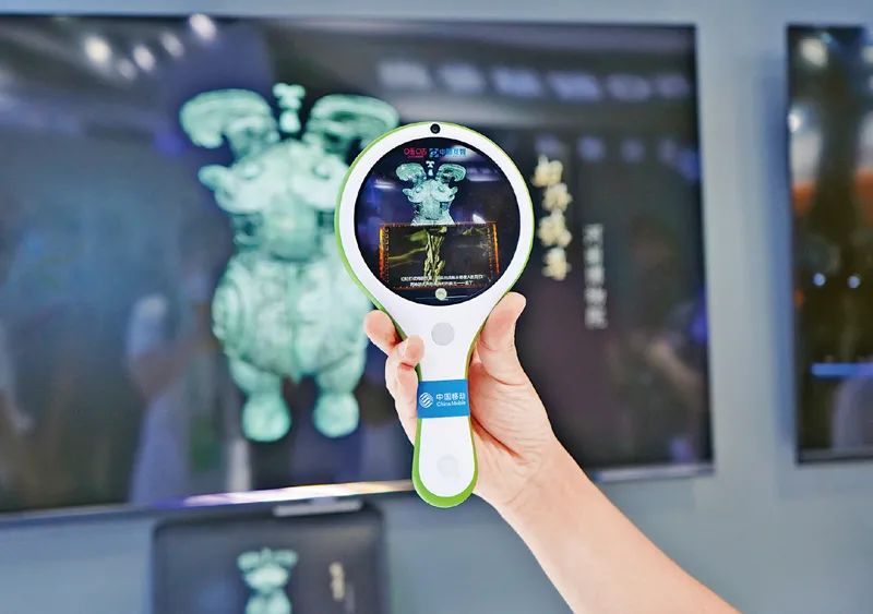 2021中国国际数字经济博览会于9月6日至8日在河北省石家庄市举行,共有468家企业参展,汇聚了国内外数字经济领域众多知名企业。图为工作人员展示通过AR探索镜扫描获取文物相关信息。新华社记者 金皓原/摄