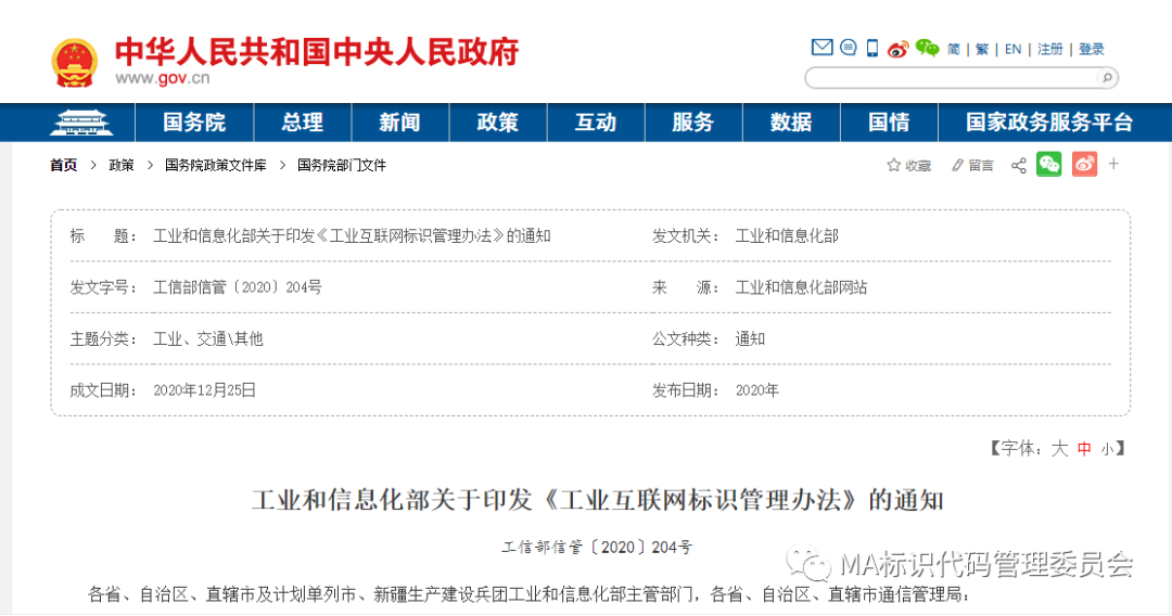 2018 年 5 月 25 日,欧盟发布了《一般数据保护法案(GeneralData Protection Regulation, 679/2016, GDPR )》,看似是保护公民数据隐私,但从另一个角度来分析,同时也制定了全球数据的管理规则,以一种更合理的方式去掌握信息管理的话语权。与此相对应,为促进工业互联网标识解析体系健康有序发展, 工信部也于今年6月1日正式发布了《工业互联网标识管理办法》,这是标识代码领域首部正式法规。
