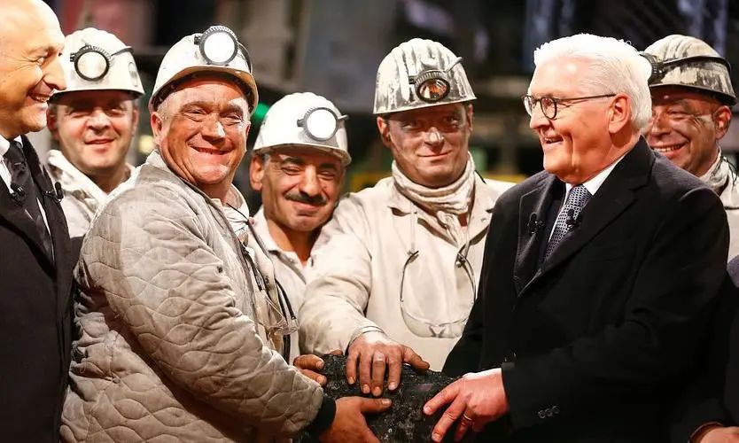 时针指向6点,面前矿井升降机的声音响起,五位矿工缓缓升上地面。他们隶属于鲁尔煤业集团,领头的老矿工从身后的矿车中选出了形状最好的一块硬煤,将其交到了总统手中。施泰因迈尔难掩激动的神情,他转身向身后的1500名矿工宣布:“一个时代即将结束[1]。”