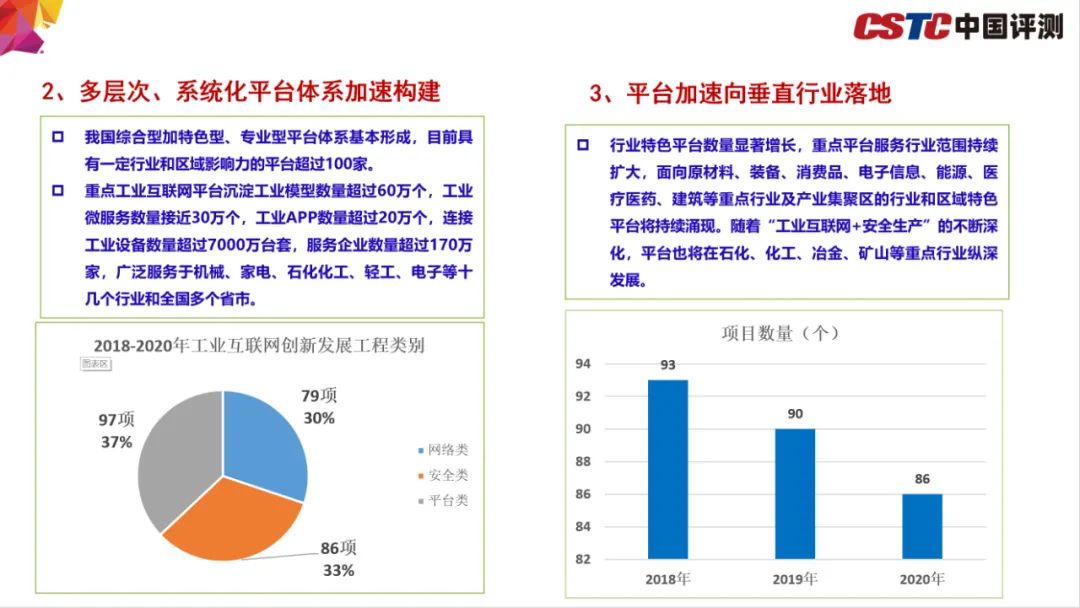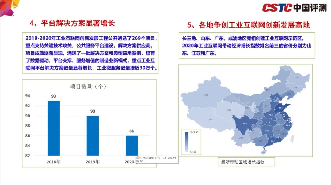 第四个趋,平台解决方案显著增长。我们国家从2018年到2020年连续三年实施了工业互联网创新发展工程专项,这三年公开遴选了269个项目,经过这三年的建设、应用,这些项目的成效在逐步的显现,特别是在这个平台上涌现了一批解决方案和典型的应用案例,培育了服务型制造、网络化协同、个性化定制、数字化管理、智能化生产、共享工厂等新型制造模式和数据驱动的生产范式。