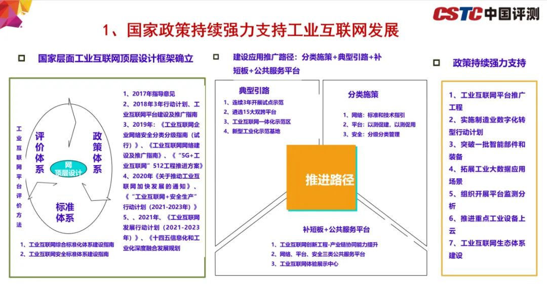 “工业互联网发展已取得阶段性成果,预计2022年,政策支持、平台体系构建、行业落地、解决方案、地方参与积极性、平台赋能能力、平台带动效应、关键标准研制等方向将是发展的重点。”