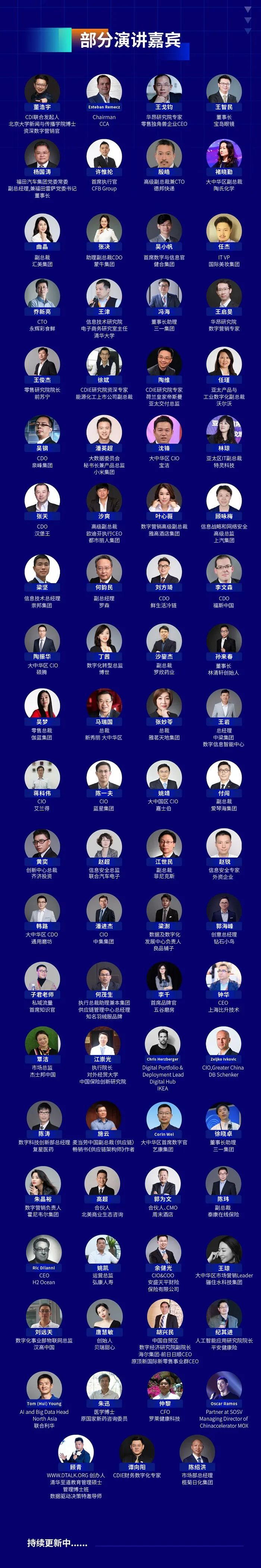 会议邀请到来自零售快消领域:美的、蒙牛、健合、宝洁、联合利华、林清轩、都市丽人、雅高酒店、宝岛眼镜、宜家、麦当劳、良品铺子、杰士邦等;医疗化工领域:阿斯利康、罗欣药业、复星医药、帝斯曼等;制造领域:三一集团、博世、上汽集团、北汽福田、霍尼韦尔等;保险领域:泰康在线、人寿保险、安盛天平等100+头部企业高管和数字化转型领袖,分享具有战略前瞻性和敏锐洞察力的企业内部最新数字化战略和实践!