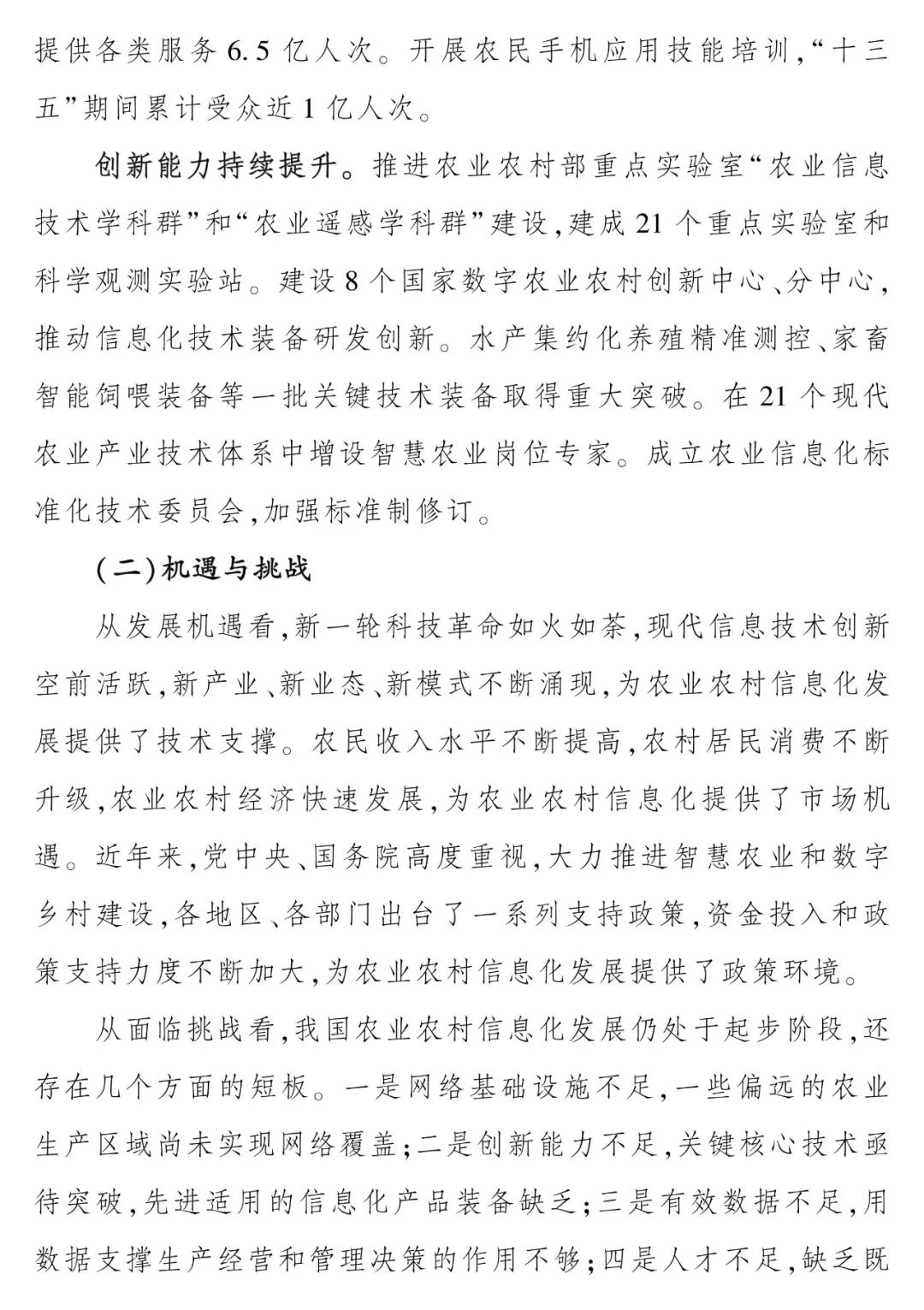 农业农村部关于印发《“十四五”全国农业农村信息化发展规划》的通知