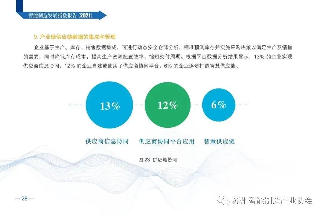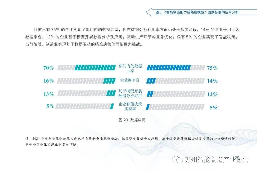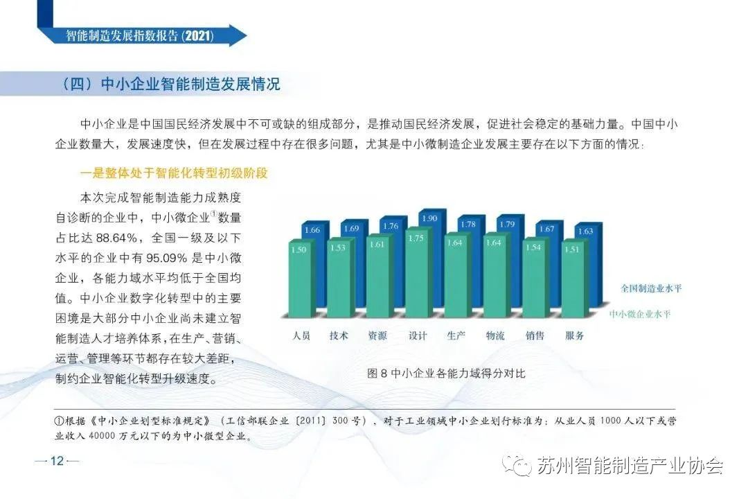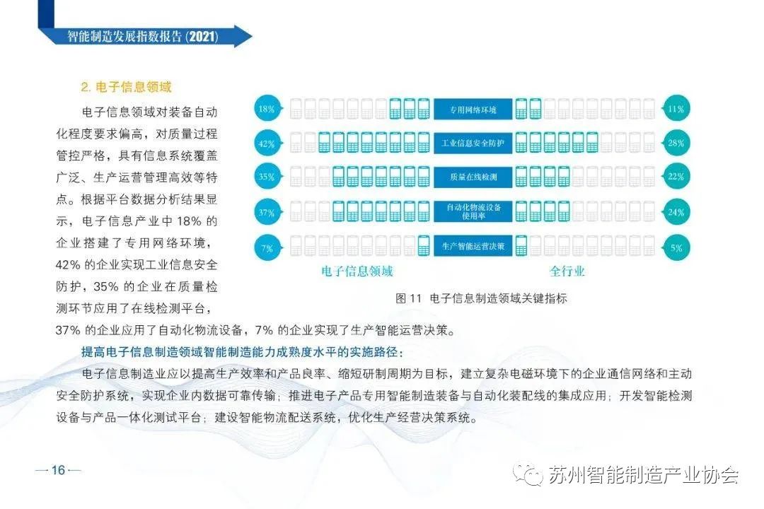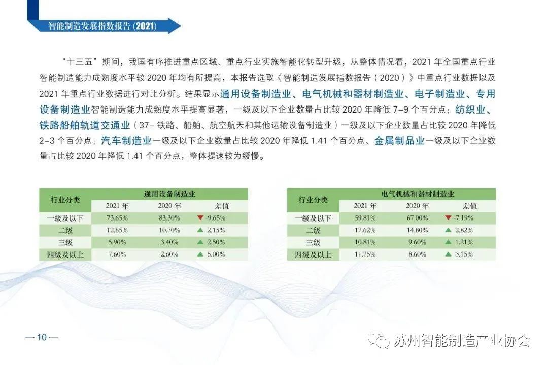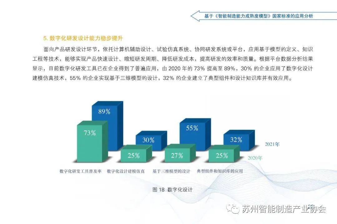 2022年3月,中国电子技术标准化研究院基于2万多家制造企业生产运行数据,研究发布了《智能制造发展指数报告(2021)》,对国内制造业智能化发展情况进行了系统分析和全面展现,多维度展现制造业在设计、生产、物流、销售、服务各环节的关键指标变化情况,直观地反映了2021年制造业的智能制造发展进程,刻画出一幅“中国制造业智能制造发展数据地图”。