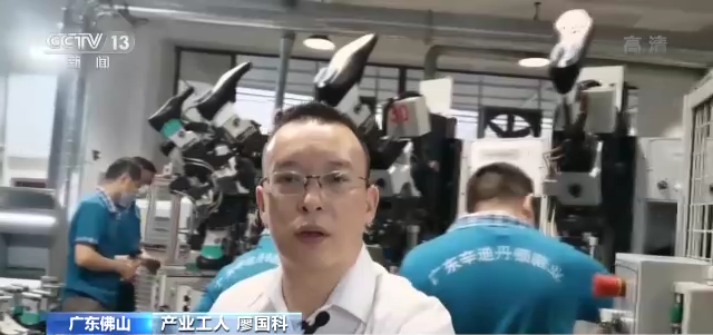 产业工人 廖国科:我叫廖国科,在佛山一家鞋厂工作十几年了。以前我们的车间制鞋工序多,拥挤嘈杂,我经常要加班。现在我只要调试好这些设备就能按标准生产,做出来的鞋子产量更高,品质也更好,今年我们工厂的利润一直在持续增加。