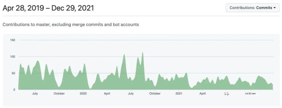 前面介绍了各种低代码实现原理,看起来都不难,但真正要实现还需要大量细节工作,以我们的 amis 为例,从 2015 年启动至今一直在持续更新,下面是 amis 开源这两年半来的提交历史[2],基本除了春节和国庆之外都在提交:
