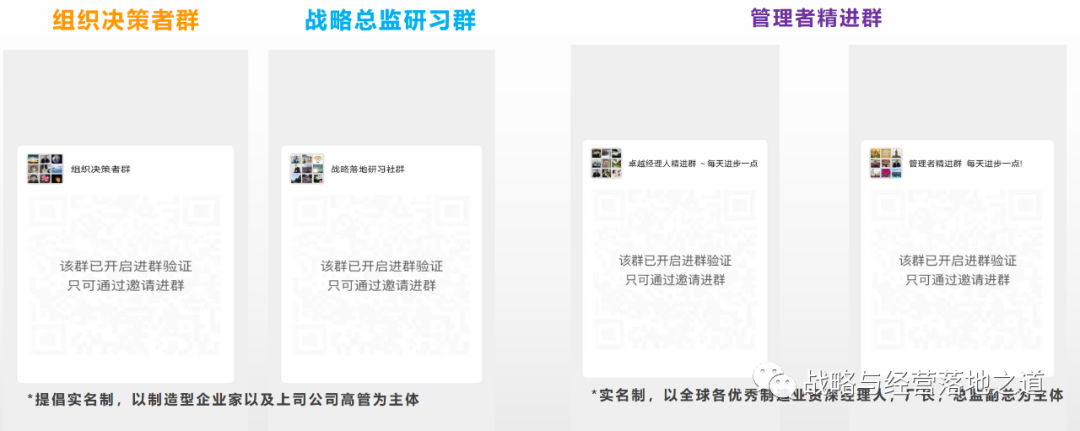 为帮助更多的企业经理人成长,我们组建了组织决策者群、战略总监群、管理者精进群,为大家提供交流学习和成长的场所,若有兴趣,可联系我(13923228076 ,微信同号)拉入群。