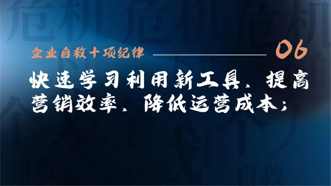 ??自救纪律6:快速学习利用新工具,提高营销效率,降低运营成本。