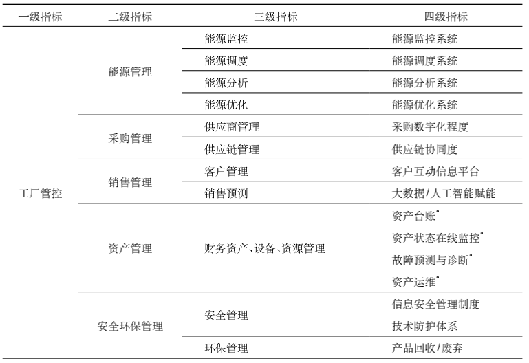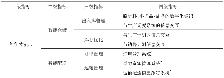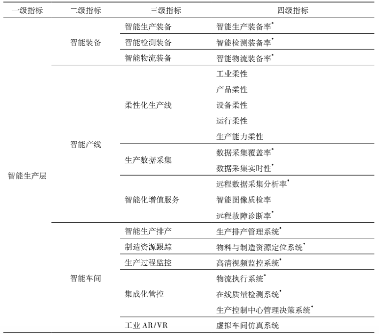 表 4 智能生产层指标构成( 带* 为标识相关部分)