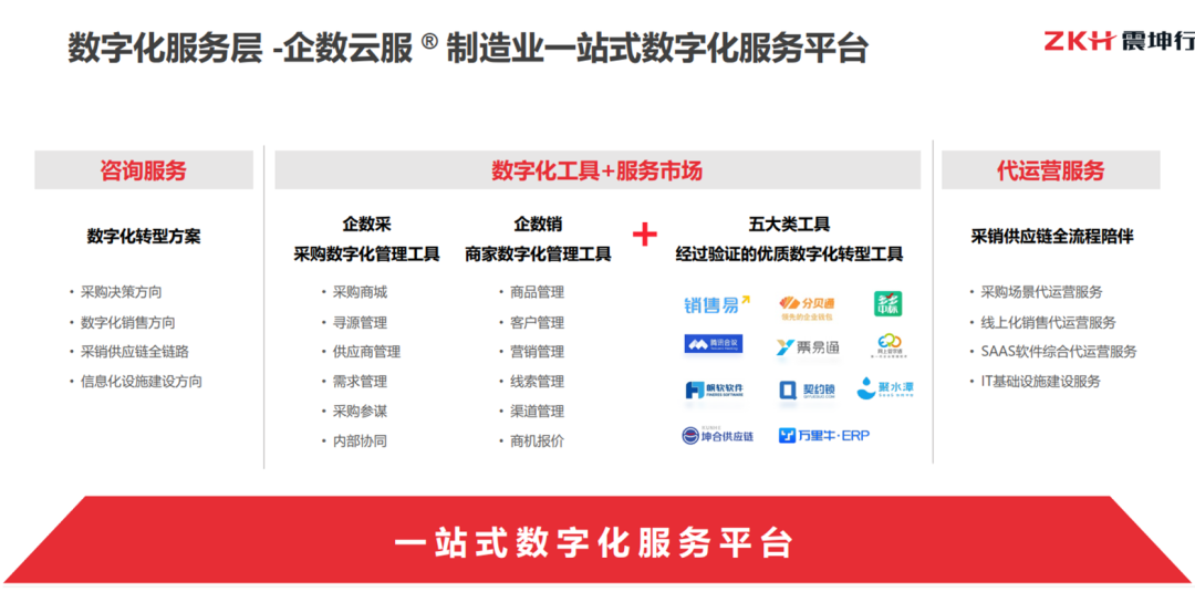 据此,企业云服顺应时代发展,依托大数据和人工智能技术,致力于通过数字化能力和数字化工具,围绕采销供应链,赋能制造业合作伙伴!企业云服通过强大的数字化专家团队提供专业的咨询服务,通过“一站式数字化服务平台”提供采购数字化管理工具——企数采,销售数字化管理工具——企数销,以及强大的SaaS生态服务体系,同时为有需求的商家企业提供代运营服务。