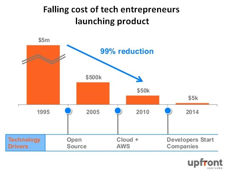 图. 启动科技创业公司的成本,越来越低