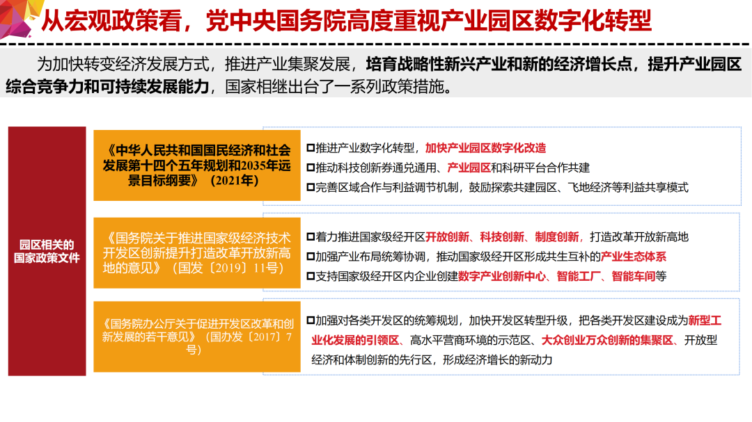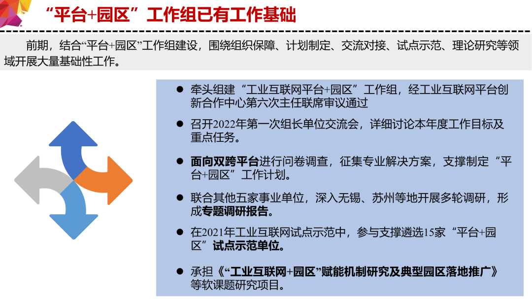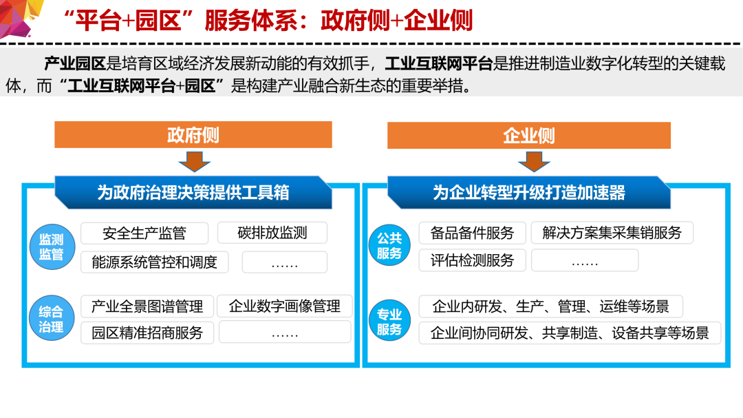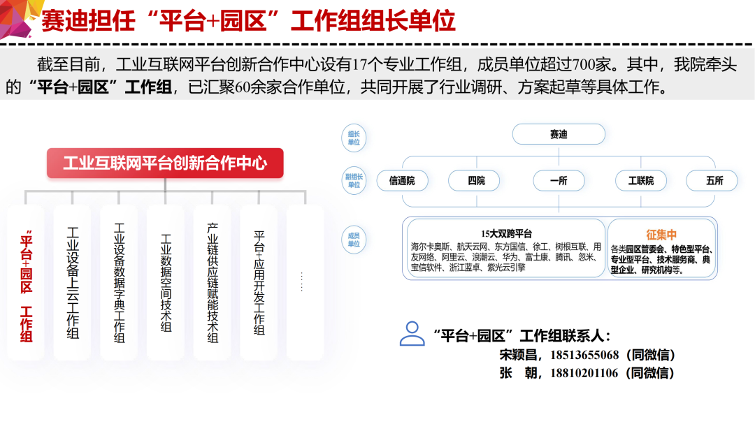 编者按:近年来,产业园区作为带动区域产业结构优化和经济动能转换的“领头雁”,积累了良好转型基础和海量应用场景,正成为工业互联网平台普及应用的新一轮主战场。赛迪研究院作为工业互联网平台创新合作中心“平台+园区”技术组组长单位,联合“工业互联网世界”围绕“平台+园区”展开系列公益宣讲,希望可以助力园区管委会构建现代化治理体系、用户企业加快数字化转型、平台企业完善商业模式。