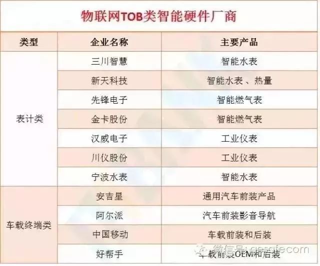 7、智能硬件厂商:提供物联网的“终端承载”智能硬件是物联网的承载终端,是指集成了传感器件和通信功能,可接入物联网并实实现特定功能或服务的设备。如果按照面向的购买客户来划分,可分为To B和To C类: