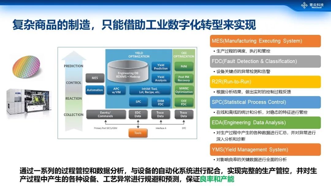 然而,事实证明早期的“精益管理”和“自动化”已经不能满足高精度、高质量产品的生产需求,这些高端需求需要借助工业数字化转型升级去实现和达成。半导体制造对工业数字化转型的需求最为迫切,概括来说其体系非常复杂,每个环节都离不开大量数据,并需要借助过程管控、数据分析实现智能改进,解决生产过程中的品质、产能、效率问题。