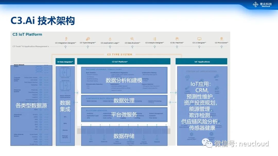 国外还有C3.AI,它的架构也遵循工业互联网的主题思路,但在应用层面可能更多的在预测性维护、资产管理、风险欺诈管理等方面。由此可见,工业互联网平台的差异化不但体现在具体平台的形态,更会在服务和产品应用层面逐步的出现侧重分化。