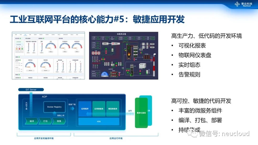 针对常用的各类工业应用,如实时监控和组态,可以通过一些轻量级、无代码的开发工具实现;而针对复杂的工业应用,需要利用多种开发工具,结合基于微服务的云应用开发平台,实现快速的应用交付。