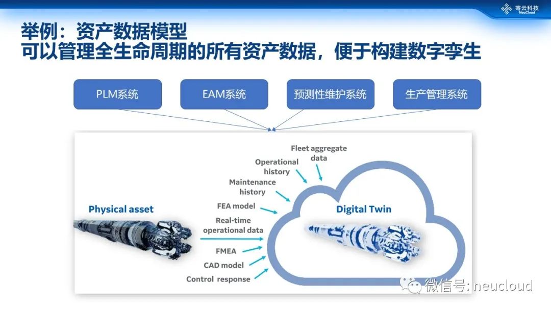 举个例子,我们把复杂设备分成系统、子系统、零部件等多个层级,每个层级都关联到设计端数据、制造端的BOM、维护历史、故障模式等,实现生命周期的数据一致性,进而为PLM系统、EAM系统、预测性维护系统、生产管理系统提供统一的数据模型。