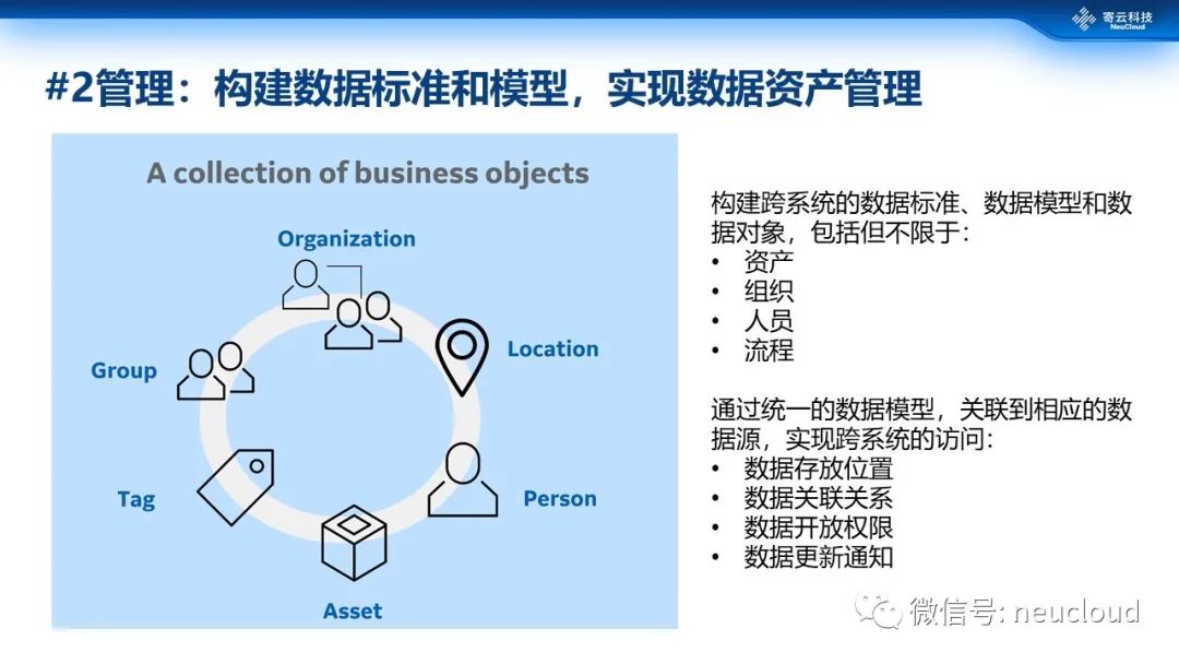 数据统一管理其实更多是在建立一些标准,实现跨业务系统数据无障碍使用。标准包括但不限于资产定义、组织定义、人员定义、工艺定义、流程定义,只有建立这样的标准,才能够关联到相应的数据源,才能够实现跨系统的一致性的数据访问。标准还应该涉及数据的存放位置、数据关联关系、数据的权限以及数据更新等各个细节。传统烟囱式的工业系统在这方面可以说非常混乱,导致数据的跨系统使用很难实现。通过一致的、全生命周期的数据模型可以实现数据的统一跨系统访问。
