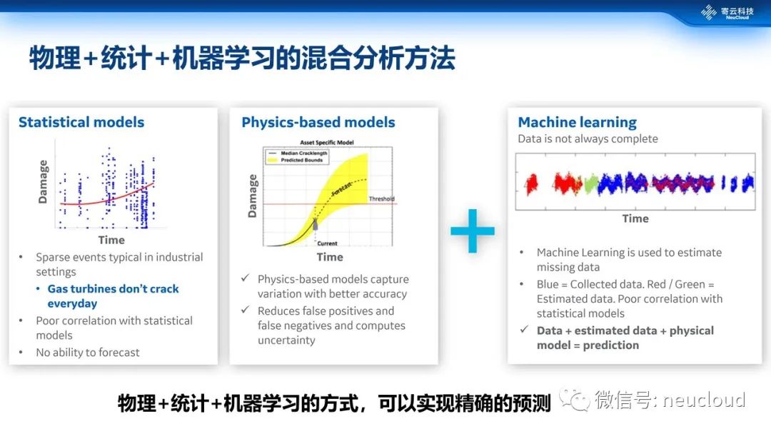 同样的,人们也在尝试把物理、统计和机器学习组合在一起。图中是贝克休斯基于统计模型、物理模型再加上机器学习,以求取得更好的预测结果。