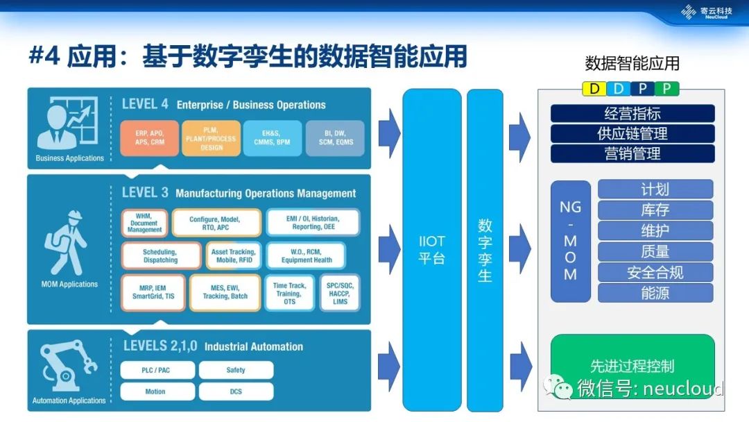 第2个层面是运营性能管理应用,主要覆盖生产过程中各种关键指标的优化。