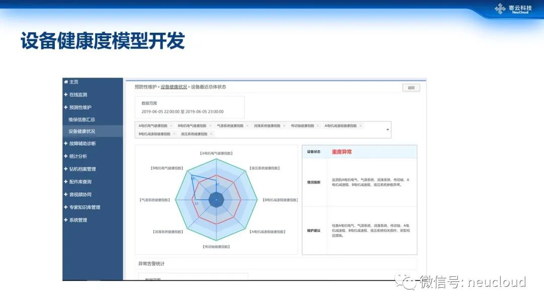 同时,在多种维度层面开发相应的模型,比如设备健康度模型,可以覆盖电气、润滑、传动等各种维度健康状态。