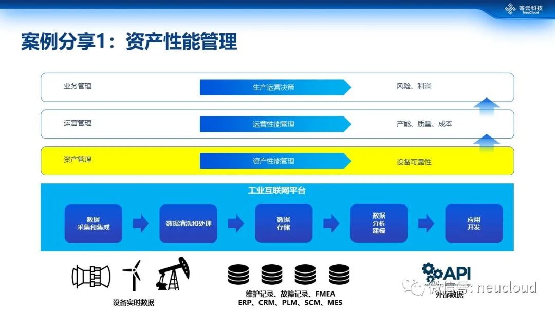 在之前的内容提到,寄云科技工业互联网应用根据企业的功能层次,划分为资产、运营和业务的管理三个层面。我们先分享资产性能管理这个层面的案例。