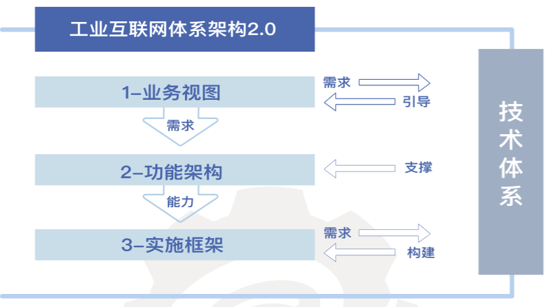 随着我国工业互联网的不断发展和演进,2020 年 4 月,工业互联网体系架构 2.0 问世,如图 3 所示。体系架构 2.0 继承了 1.0 的核心思想,包括业务视图、功能架构和实施框架三大板块,以商业目标和业务需求为导向,进行系统功能界定与部署实施,为我国工业互联网的发展方向提供了更加细化的指引。
