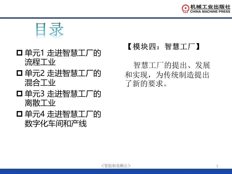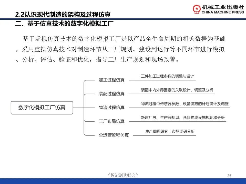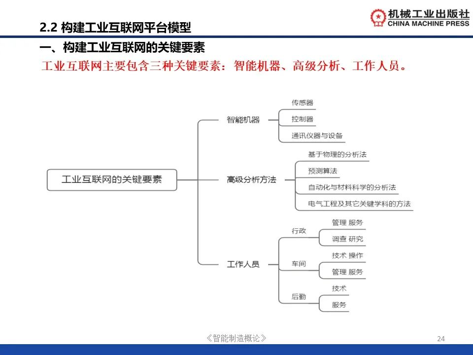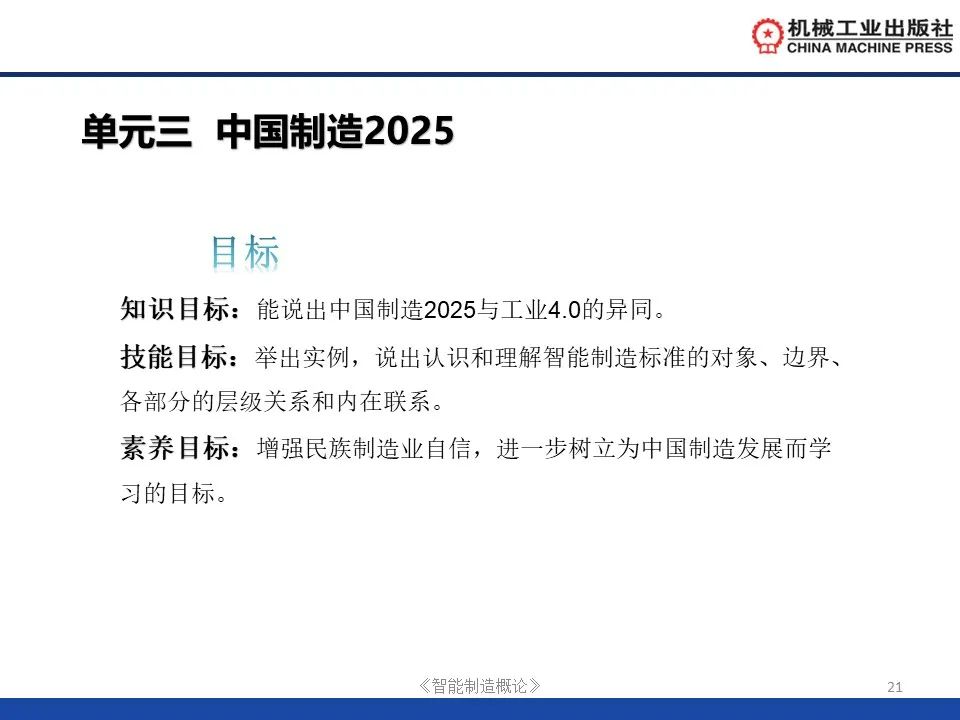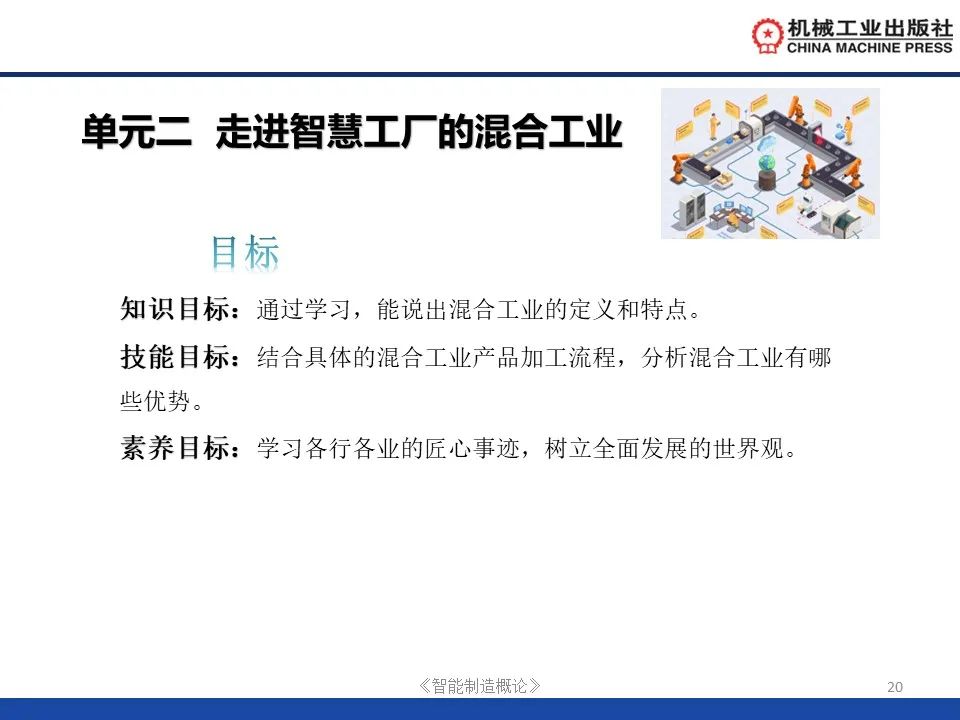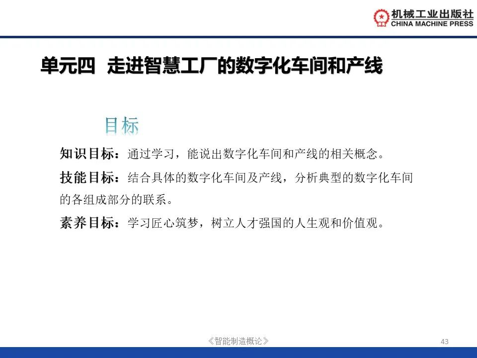 前言模块1走进智能制造单元1智能制造发展史单元2工业40单元3中国制造2025模块2智能制造关键技术单元1走进赛博物理系统(CPS)任务1认识赛博物理系统任务2构建赛博物理系统模型单元2走进工业互联网任务1认识工业互联网任务2构建工业互联网平台模型单元3走进工业机器人任务1认识工业机器人任务2构建工业机器人系统模型单元4走进3D打印技术任务1认识3D打印技术任务2构建3D打印模型单元5走进传感技术任务1认识传感技术任务2构建传感技术系统模型单元6走进大数据与云计算任务1认识大数据与云计算任务2构建大数据与云计算应用模型单元7走进虚拟现实技术任务1认识虚拟现实技术任务2构建虚拟现实系统单元8走进信息安全技术任务1认识信息安全任务2认识信息安全主要技术模块3智能制造产品全生命周期管理单元1走进产品设计任务1认识产品生命周期任务2设计及调整产品价值机会单元2走进过程仿真任务1认识数字工厂与过程控制任务2认识现代制造的架构及过程仿真单元3走进管理布局任务1认识管理任务2生产管理布局单元4走进生产过程任务1认识产品生产过程任务2了解生产过程环节的设计单元5走进产品优化任务1认识产品优化创新任务2创新实践模块4智慧工厂单元1走进智慧工厂的流程工业任务1认识智慧工厂的流程工业任务2流程工业系统分析方法与建模仿真单元2走进智慧工厂的混合工业任务1认识智慧工厂的混合工业任务2混合工业的组织与建模仿真单元3走进智慧工厂的离散工业任务1认识智慧工厂的离散工业任务2离散工业的结构及仿真单元4走进智慧工厂的数字化车间和产线任务1认识智慧工厂的数字化车间和产线任务2了解数字化车间系统功能结构与产线布置结构模块5智能制造运营管理单元1MES运用与管理任务1认识MES任务2MES的典型运用与管理单元2云平台运用与发展任务1认识云平台任务2云平台的实现形式与运用参考文献