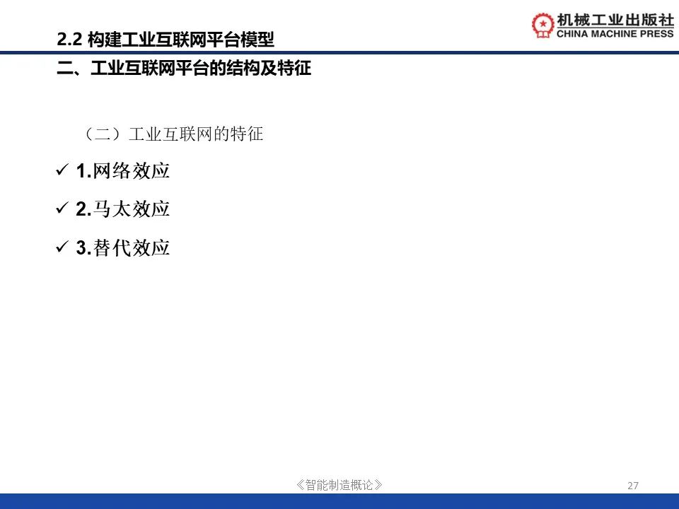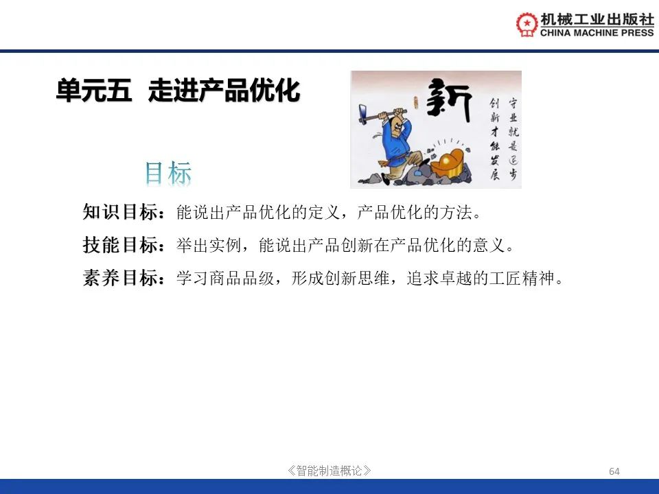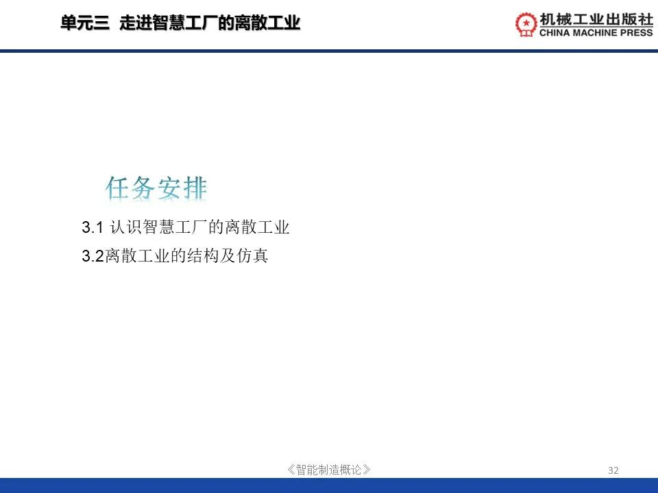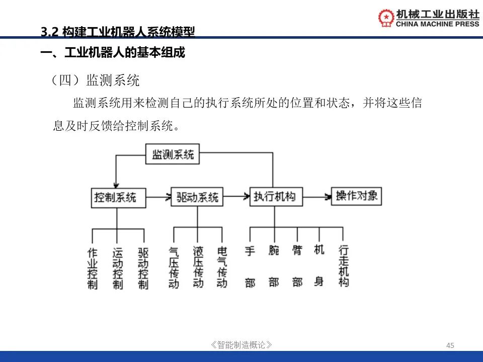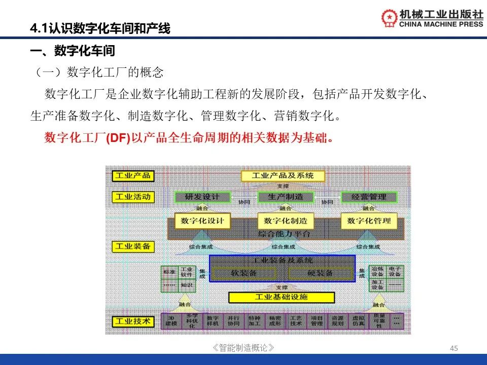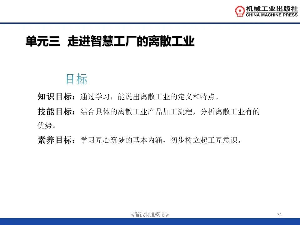 前言模块1走进智能制造单元1智能制造发展史单元2工业40单元3中国制造2025模块2智能制造关键技术单元1走进赛博物理系统(CPS)任务1认识赛博物理系统任务2构建赛博物理系统模型单元2走进工业互联网任务1认识工业互联网任务2构建工业互联网平台模型单元3走进工业机器人任务1认识工业机器人任务2构建工业机器人系统模型单元4走进3D打印技术任务1认识3D打印技术任务2构建3D打印模型单元5走进传感技术任务1认识传感技术任务2构建传感技术系统模型单元6走进大数据与云计算任务1认识大数据与云计算任务2构建大数据与云计算应用模型单元7走进虚拟现实技术任务1认识虚拟现实技术任务2构建虚拟现实系统单元8走进信息安全技术任务1认识信息安全任务2认识信息安全主要技术模块3智能制造产品全生命周期管理单元1走进产品设计任务1认识产品生命周期任务2设计及调整产品价值机会单元2走进过程仿真任务1认识数字工厂与过程控制任务2认识现代制造的架构及过程仿真单元3走进管理布局任务1认识管理任务2生产管理布局单元4走进生产过程任务1认识产品生产过程任务2了解生产过程环节的设计单元5走进产品优化任务1认识产品优化创新任务2创新实践模块4智慧工厂单元1走进智慧工厂的流程工业任务1认识智慧工厂的流程工业任务2流程工业系统分析方法与建模仿真单元2走进智慧工厂的混合工业任务1认识智慧工厂的混合工业任务2混合工业的组织与建模仿真单元3走进智慧工厂的离散工业任务1认识智慧工厂的离散工业任务2离散工业的结构及仿真单元4走进智慧工厂的数字化车间和产线任务1认识智慧工厂的数字化车间和产线任务2了解数字化车间系统功能结构与产线布置结构模块5智能制造运营管理单元1MES运用与管理任务1认识MES任务2MES的典型运用与管理单元2云平台运用与发展任务1认识云平台任务2云平台的实现形式与运用参考文献
