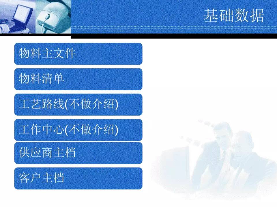 此ppt非常清晰地讲解了ERP的原理和运行机制,对想了解ERP的受众是个很好教材。