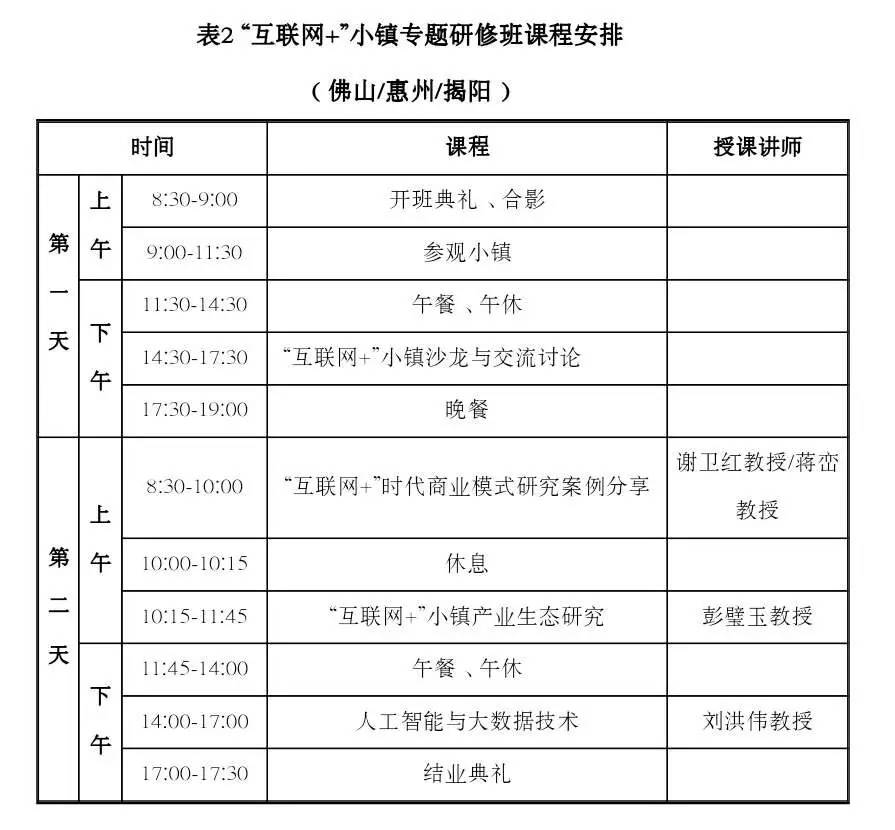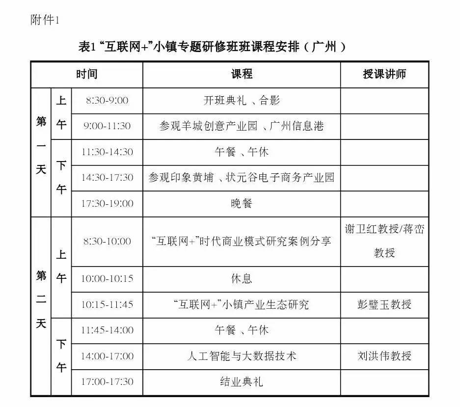 1.“互联网+”小镇专题研修班课程安排