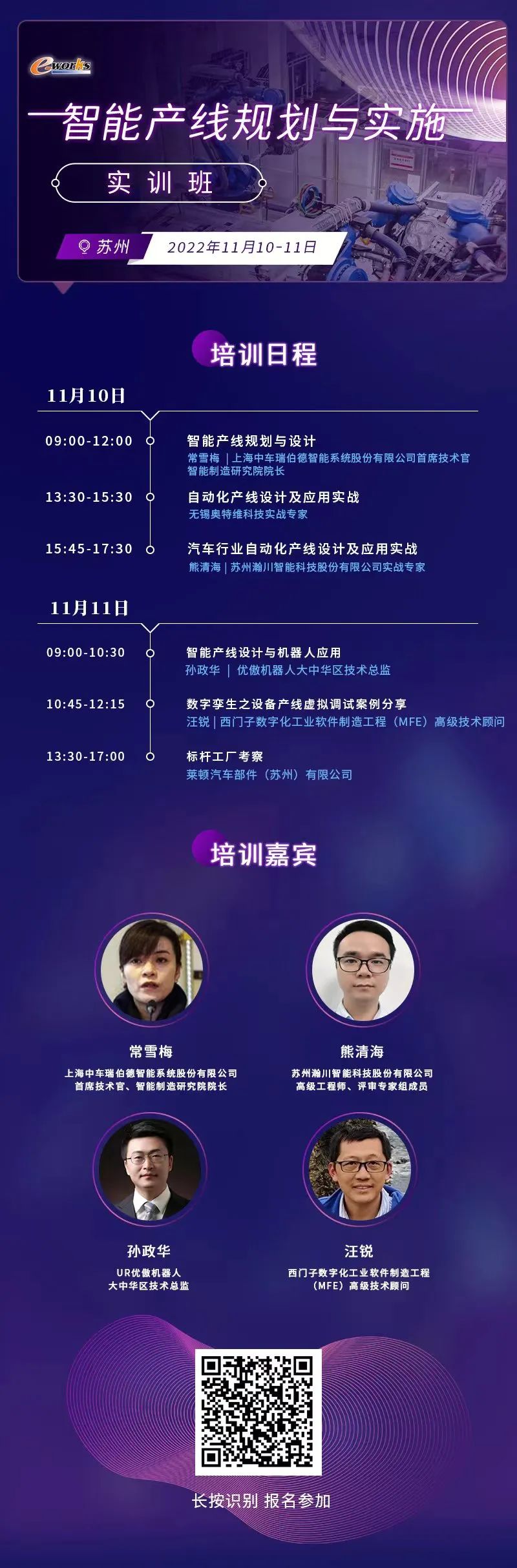 e-works将于2022年11月10-11日在江苏苏州举行“ 智能产线规划与实施实训班”。本次课程将帮助企业厘清智能产线规划与实施中的重难点问题,在规划与实施智能产线时少走弯路。(长按上图二维码或点击图片链接了解详情和报名)