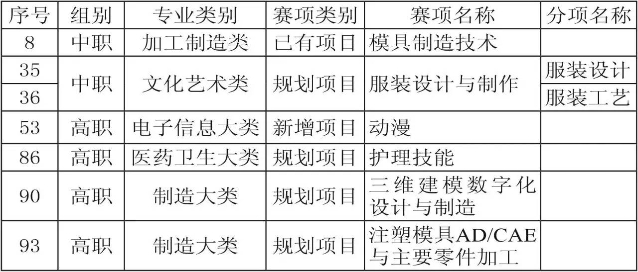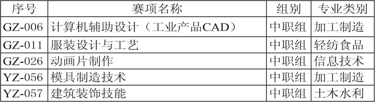 表2 2015年技能大赛拟设赛项对应专业名单(中职组)(摘录)