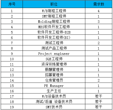 SMT技术员 (若干名)