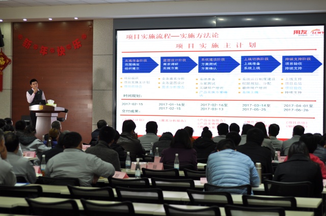 富思特ERP项目建设的合作伙伴——用友软件ERP项目总监与项目经理就项目的总方针、沟通机制、实施目标等做了详细介绍,为项目实施提供了强有力的计划和制度保障。