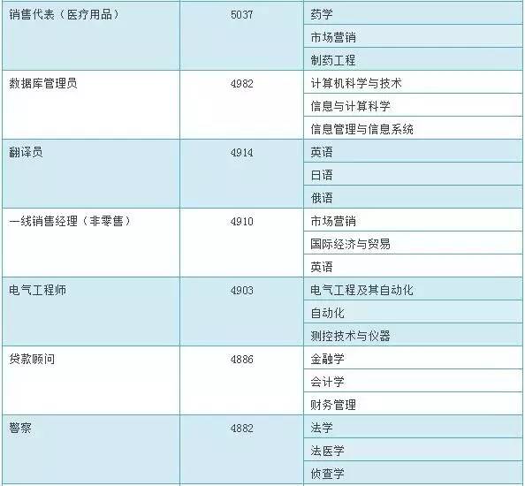 前30位高薪职业对应专业是…本科毕业生从事的前30位高薪职业及其对应专业(前3位):